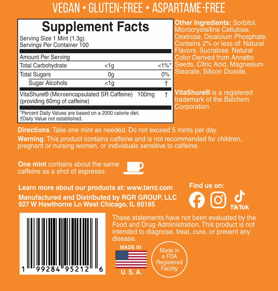 - 60mg of caffeine per mint